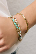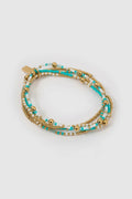 Stacking made simple with the Nellie Bracelet, a beaded beauty designed to add a playful pop of colour to your look. Featuring a mix of ocean, white, and golden beads, it's rich in texture and effortlessly cool.