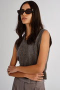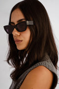 Bold in all the right ways. The Sutton is a wide cat-eye frame with sharp lines and thick temples, balanced by subtly curved metal detailing that adds a refined touch. Designed to frame the face with confidence, this style is equal parts statement and staple.