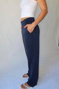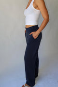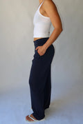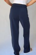 The Straight Leg Leisure Pant is designed for an oversized, effortless, comfort and versatility look. Crafted in a buttery-soft fabric, it drapes loosely off the body for a relaxed, flattering fit. Finished in classic navy, this style features side pockets, subtle rubber logo detailing at the back, and an internal drawcord at the waist for an adjustable fit. Perfect for travel, everyday wear, or dressing up and down with ease.