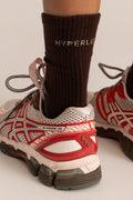 New and improved socks with our branded HyperLuxe logo, made for every day. The perfect lightweight sock with the perfect amount of cushioning, you won't want to take these bad boys off!! this logo is featured on the back of the ankle