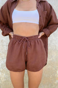 đ HyperLuxe Linen Drawstring Shorts- Brown (100% off)