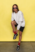 The Double Take Long Sleeve Tee is your effortless everyday staple. Crafted from 100% soft, breathable cotton, this tee features a relaxed oversized fit designed for comfort and easy layering. With its classic crew neckline, dropped shoulders and long sleeves, it delivers that laid-back, worn-in look you’ll keep reaching for. This tee is a long sleeve and T-shirt built in one- YES it's connected!!