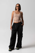 Crafted from lightweight crinkle woven nylon, this cargo pant features a relaxed fit and functional side leg pocket. Breathable, soft, and durable with a refined textured finish, it’s designed for effortless everyday wear.