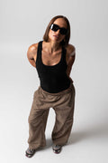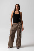 A lightweight crinkle woven nylon cargo pant with a relaxed silhouette and side leg pocket. Soft yet hard-wearing with subtle texture, this style offers all-day comfort and easy movement. Finished in a taupe colourway with a butter logo detail on the leg pocket.