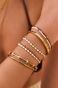 - A classic chain with a modern twist, the Portia Bracelet is the golden jewel you’ll never want to take off. Featuring unique link detailing, this timeless piece pairs effortlessly with your favourite bracelets or shines as the perfect first chain to begin your stack. Pair with the matching Portia Necklace for a truely classy look.